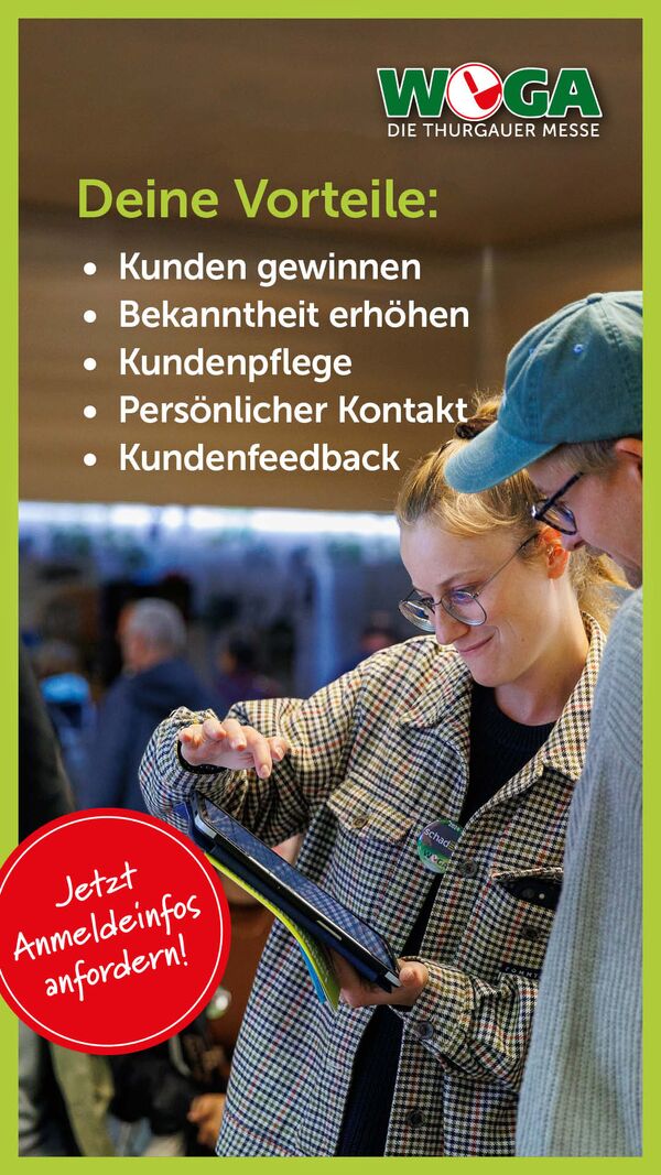 Im Thurgau gehören Messen zu beliebten Freizeitaktivitäten der Bevölkerung und sind wichtige Informations-Plattformen, um neue Produkte oder Unternehmen kennen zu lernen. Mit 140'000 Besuchern und über 400 Anbietern ist die WEGA der grösste und bedeutendste Marktplatz resp. Wirtschaftsmultiplikator des Kantons. Der persönliche Kontakt mit potenziellen oder bestehenden Kunden bietet herausragende Möglichkeiten, um die Bekanntheit zu erhöhen und Neukunden zu gewinnen.