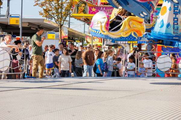Halle 14, Berufsbildungszentrum - TKB-Meile: Verschiedene Attraktionen rund um die TKB-Bühne erleben oder einfach kurz auf der Sitzbank entspannen